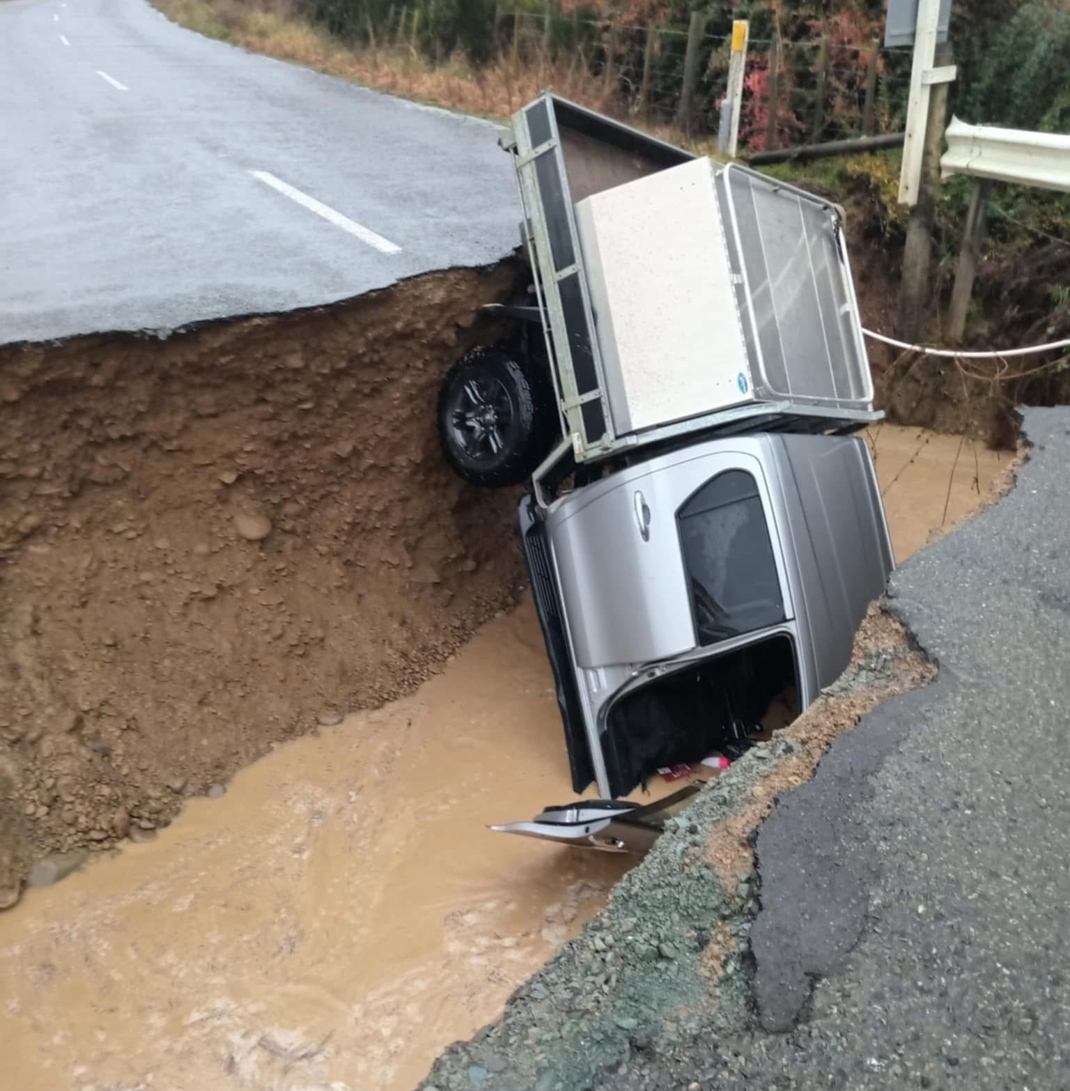 Police say they were notified at around 9:20am of a vehicle that had slipped down a road washout.