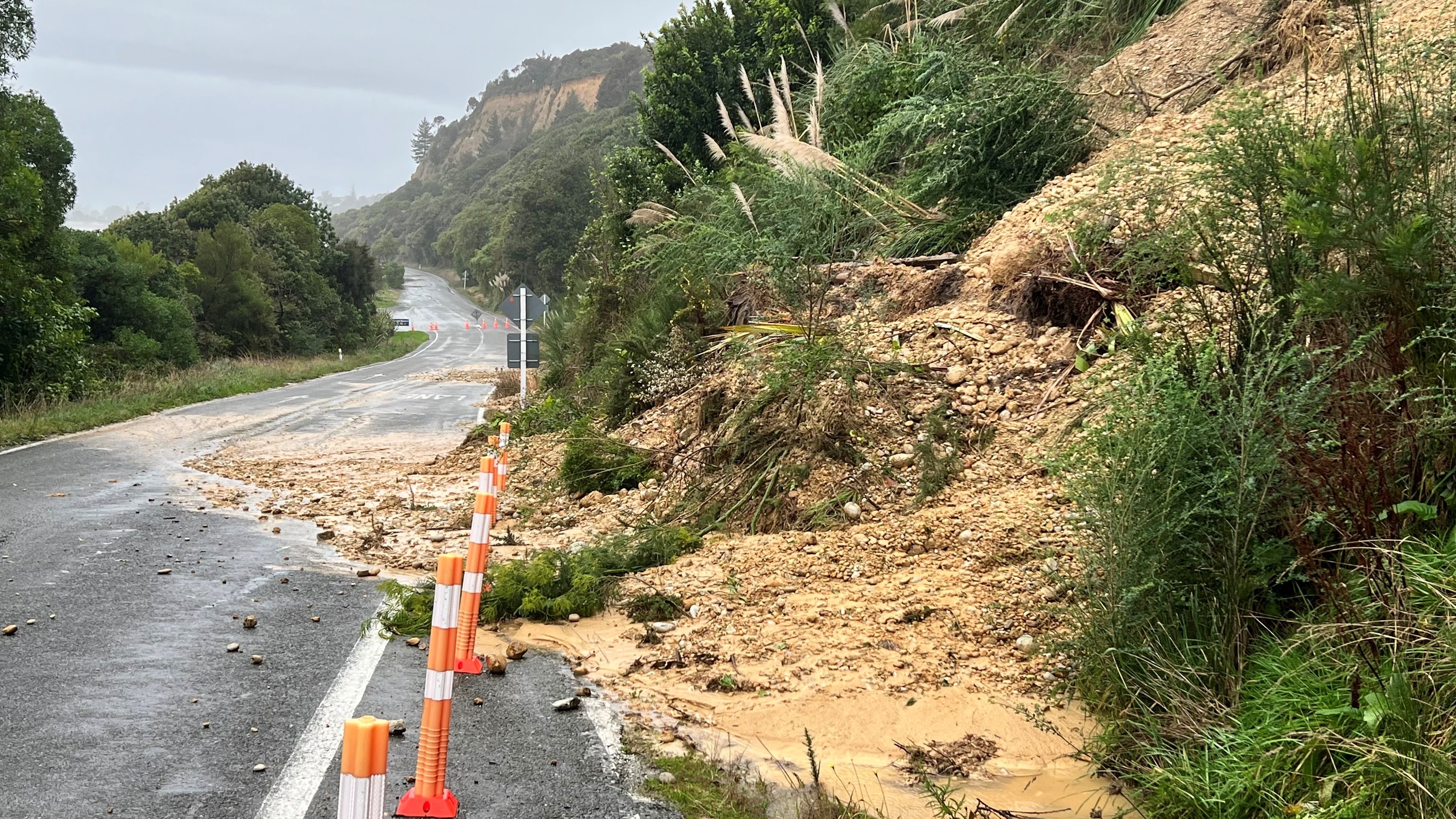 "Heavy rain can cause sloping ground to become unstable. Rocks, soil or vegetation can fall down a slope, or the land itself can slip.