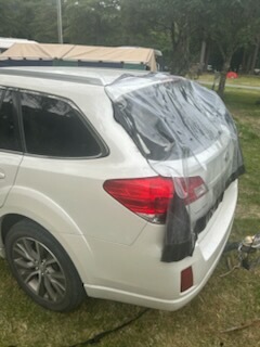"Thankfully it sheltered us. The veranda blew off and sailed over the top of us and smashed into a car next to us."