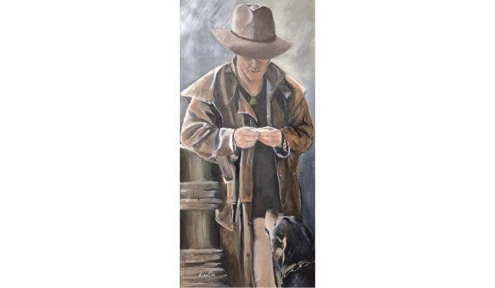 Working mainly in oils and watercolours on canvas, paper or board, Kirstie’s art celebrates the rural life she knows so well. Her subjects include farmers, dogs, wool bales, old tractors and work horses. They are not posing, they are living. Each piece captures a quiet authenticity, moments of connection between people, animals and the land.