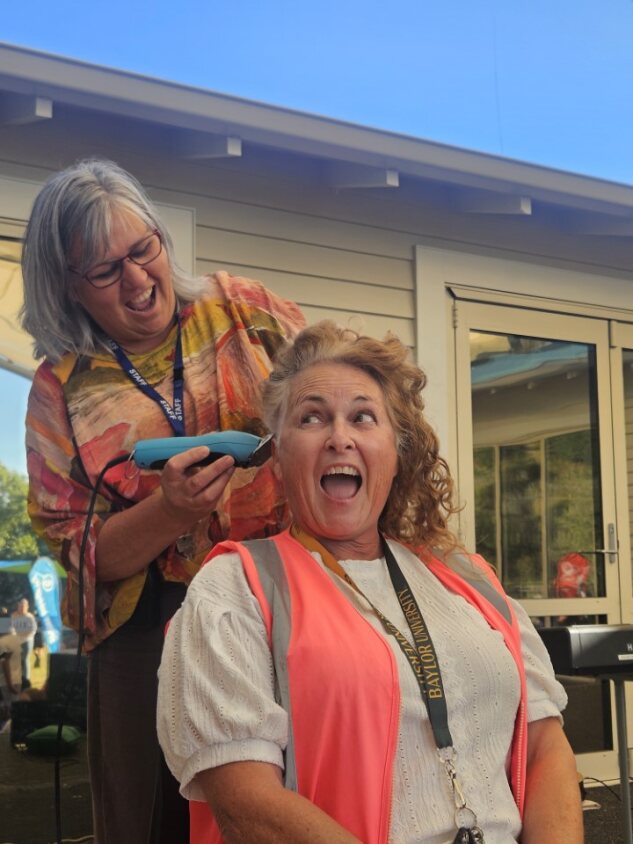 Two weeks ago, the school went even further, hosting a community fundraiser that saw principal Jenny Laidlaw shave off her long, curly hair, while associate principals Tommy Winnington and Paora Konia endured a full leg wax to the absolute delight of students.