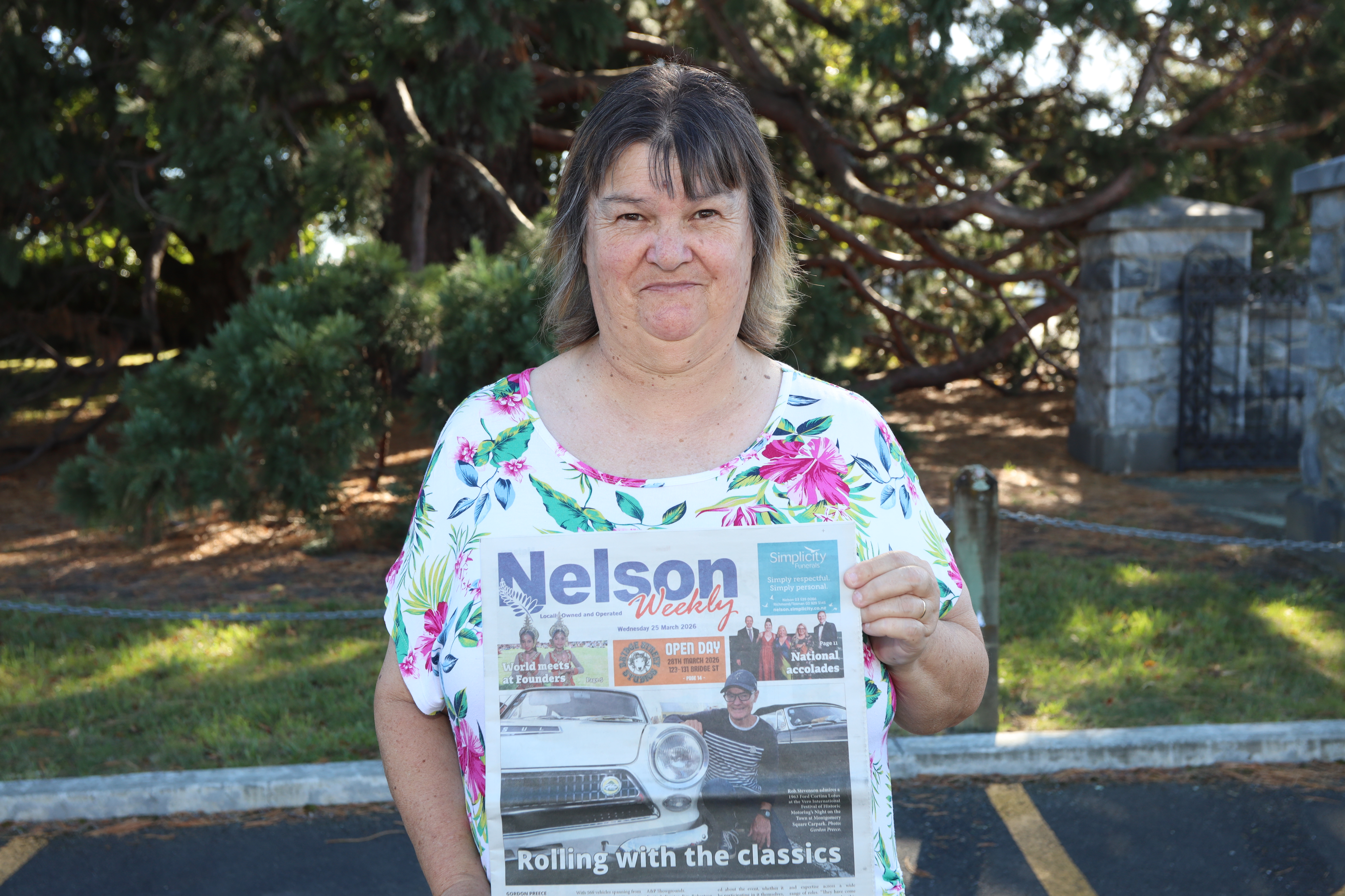 Before most of Nelson has finished their first coffee, Sue Neill is already out on the streets with papers under her arm, greeting familiar faces, and stopping to pat a few four‑legged friends along the way.